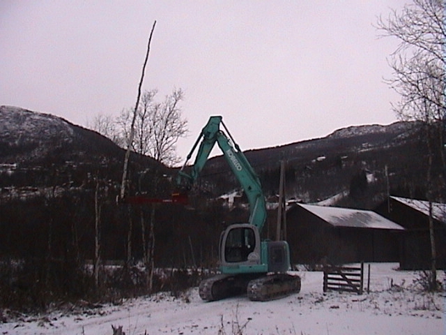 og den sitter fast i kniven til den er lagt pent i haug eller på hengeren.